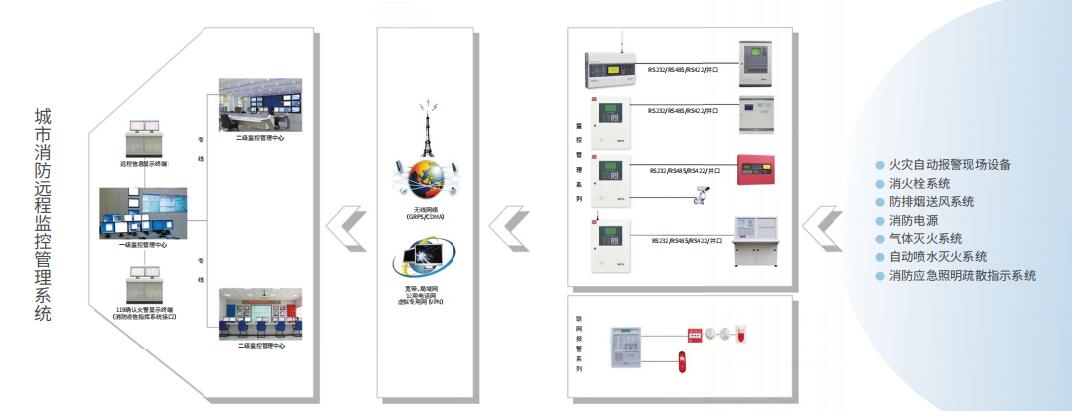海灣GST119NET城市消防遠程監(jiān)控管理系統,以現代通信和網絡傳輸技術為基礎結合語音對講、視頻聯動確認,WEB信息發(fā)布等多種先進手段,可以對包括城市區(qū)內重點單位、大型室內娛樂場所、高層建筑、地下設施、賓館、商場、石化企業(yè)、易燃易爆性質等單位企業(yè)的建筑物火災報警系統進行大區(qū)域聯網管理,實現有效監(jiān)管、快速報警,確保了火災探測報警系統和消防安全設施正常運行,提高火災探測報警系統的可靠性、降低誤報率;同時通過傳輸火災探測報警系統的設備運行數據和報警信息,為消防監(jiān)管和滅火救援部門提供強有力技術支持,實現消防報警自動化,提高對火災初期的發(fā)現和報警速度,準確迅速撲救火災,加速了城市消防管理智能化、網絡化的發(fā)展進程,從而提高整體防災減災技術水平和綜合能力。